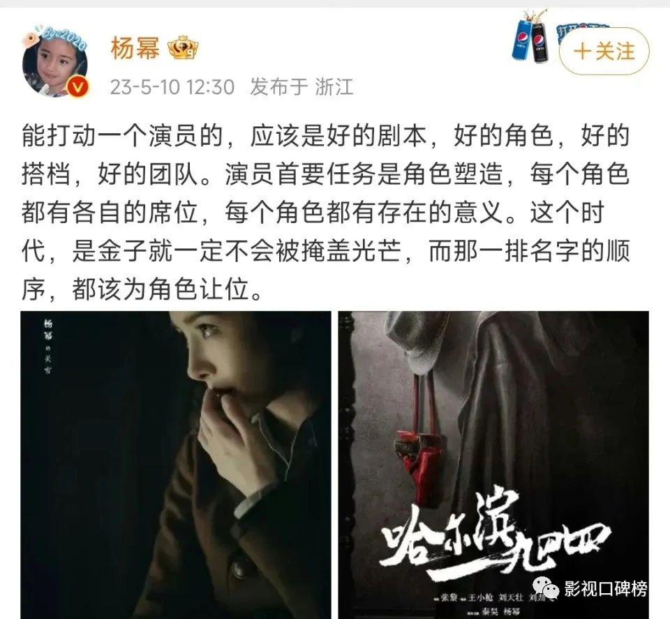而正式宣布离开这家公司后,她接拍的第一部剧就是刚才提到过在拍摄的《哈尔滨 1944》。官方微博在公布这则消息的时候,微博里面第一个提到的艺人是秦昊,接下来才是杨幂。本来消息出来一整天都没有什么事,但是到了半夜," 杨幂 二番 " 这个话题突然被拿出来热议。