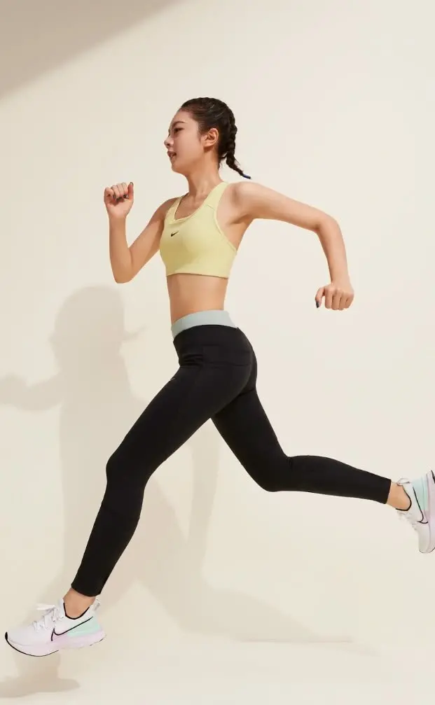 编织的双麻花辫看起来十分的俏皮可爱,身上穿了一件黄色的运动背心,露出了纤细的小蛮腰,搭配了黑色的紧身裤,脚上穿了白色的运动鞋,显得活力十足,当她跳起来的时候,简直A爆了!