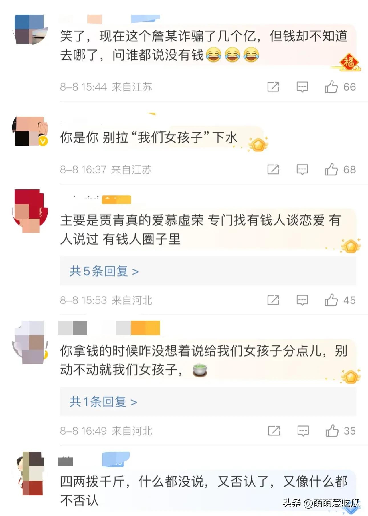 贾青就更不用提了,就是个不务正业,只想“捞钱”的主儿。除了狗仔爆出过她和多位老总、男明星之间的“恩爱纠缠”,王思聪曾经也“实锤”过她一些“辉煌历史”。