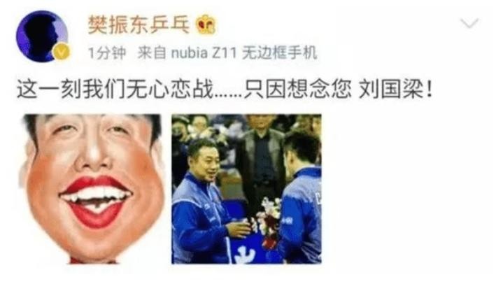 就在这个时候,刘国梁的好友、王楠的老公郭斌却挺身而出,在直播中替刘国梁喊冤。