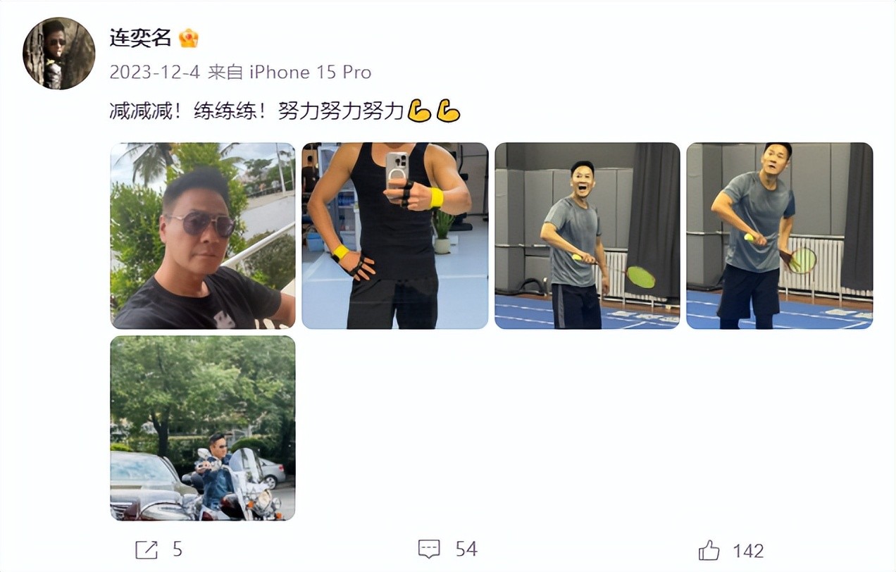去年12月4日,他在微博平台发布了自己在健身房训练的图片。