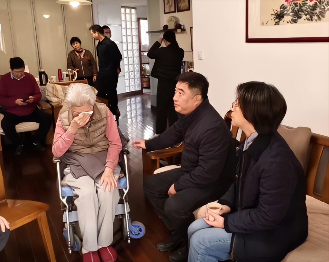 面对前来慰问的上海京剧院院长张帆和亲友们,她强打精神与人交谈,试图掩饰内心的悲痛。