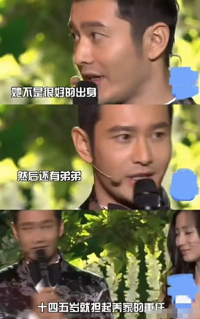 黄晓明:“她不是很好的出身,然后还有弟弟,十四五岁就开始养家了。”