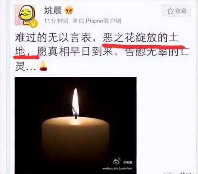 然而,没多久,昆明发生严重安全事件,姚晨发文“恶之花绽放的土地,愿真相早日到来……”