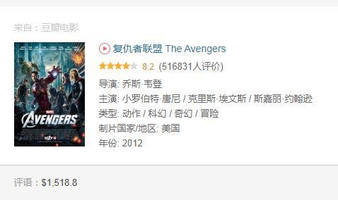 8复仇者联盟 The Avengers,全球票房15.18亿美元