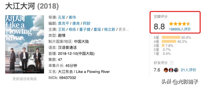 值得一说的是,这些剧中王凯主演的《大江大河》最受欢迎,单在豆瓣上的评价过人数就有近20万人,比评分排名第一的《大宅门》多了7万多人,但评分却只排在第五位。