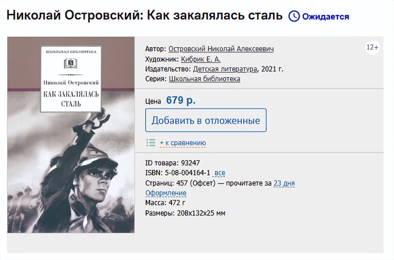 在 2023-2024 学年开始前出版的俄国联邦文学课程表单中,11年级的课外读物中再次出现了小说《钢铁是怎样炼成的》。