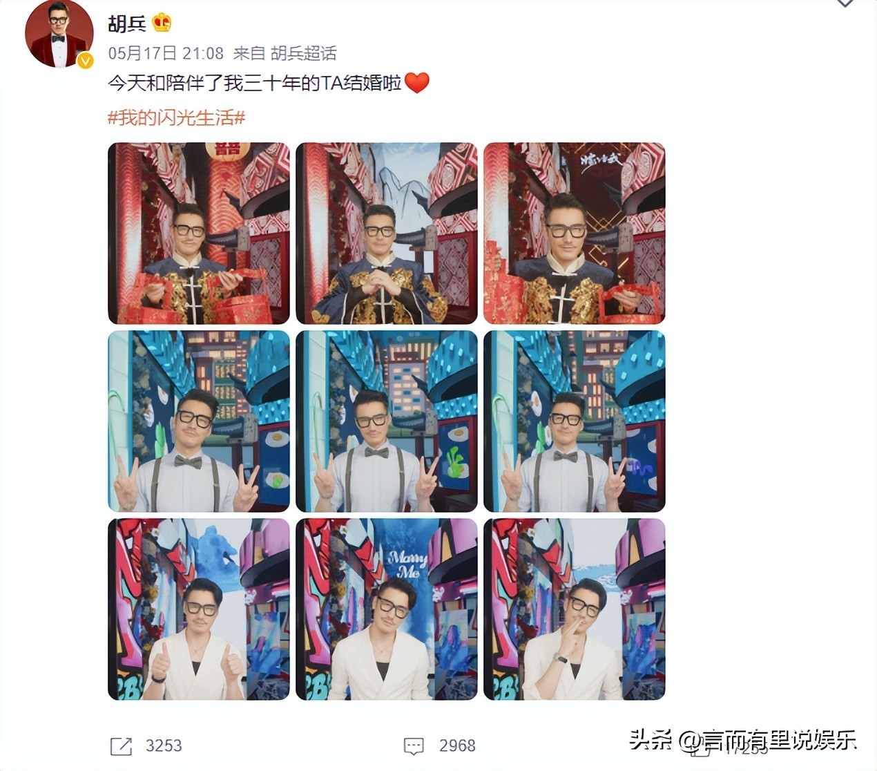 5月18日,胡兵在自己的微博上官宣跟陪伴了30年的TA结婚了,因为没有说出这个人是谁,也不知道是男是女,所以大家都怀疑这是真是假。