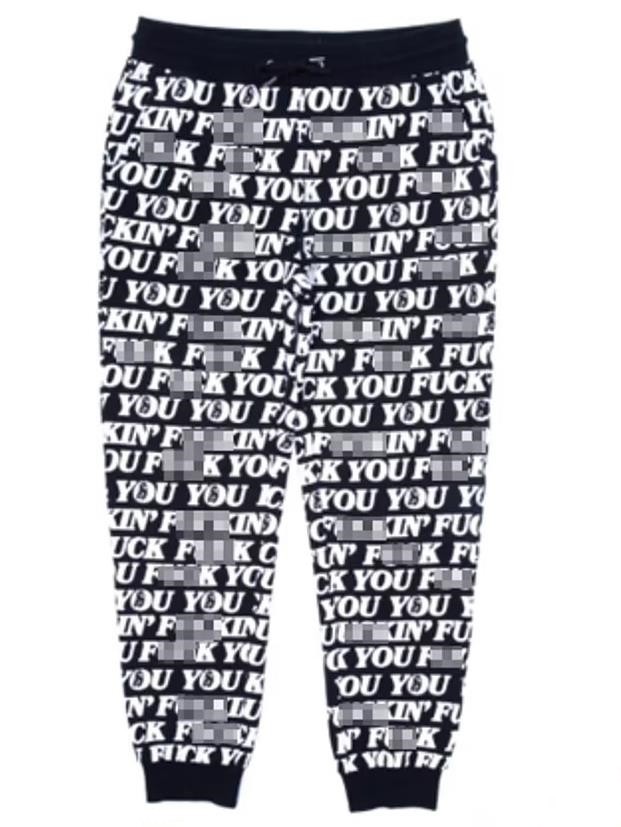 该赞助商是一家全美知名的潮牌服装设计公司,它设计出来的裤子,走的就不是寻常路,上面印满了“F*** YOU”字样。