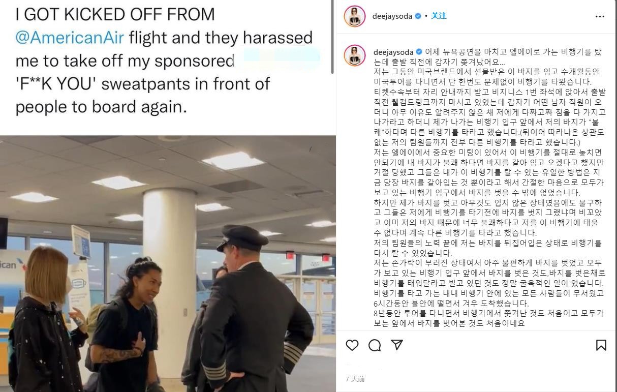 “DJ Soda穿这样的裤子是不行的,但是机组人员让她在大庭广众脱裤子也是不合理的。”