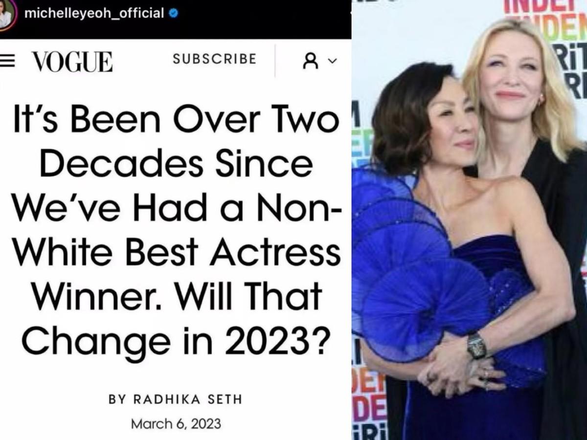 (这篇来自VOGUE的文章,标题《距离上一个非白人影后,已经过去20多年,2023年会有变化吗?》,大致内容是杨紫琼更需要这个奖,毕竟凯特·布兰切特都已经拿过好几次了)