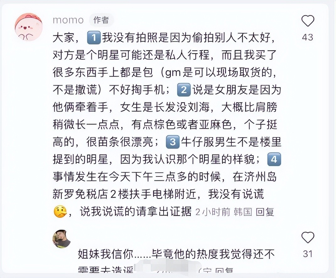 据网友透露,他们是在济州岛的一家餐厅看到王子奇和女友的,当时他们正坐在一张桌子旁,相视而笑,十分甜蜜。网友还说,王子奇的女友长得很漂亮,身材也很好,看起来很有气质。网友还偷偷拍了几张照片,上传到了社交媒体上。