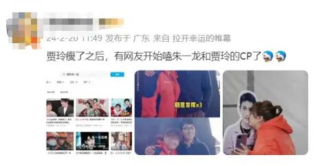 比如前两年,贾玲和朱一龙曾经因为电影结缘组过 CP,最近,就有不少网友开始磕起了这一对,不过素材基本还是贾玲胖胖的时候。