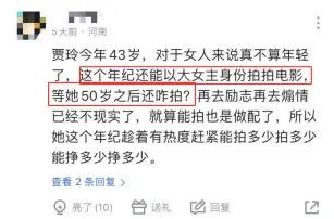 有人一上来就先说贾玲 " 不算年轻了 ",然后开始替她焦虑," 这个年纪还能以大女主身份拍拍电影,等她 50 岁之后还咋拍?"