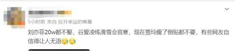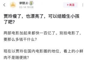 咋说呢,看完这些爹味十足的指指点点,真的让人很无语,以前是 " 刘亦菲 20 万都不娶,谷爱凌练滑雪会宫寒 ",现在轮到 " 贾玲瘦了倒贴都不要 " 了。