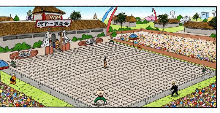 《龙珠》中的“天下第一武道会”场地曾损毁过多次。但早期的比武地点,一直都设定在一座武道寺中。