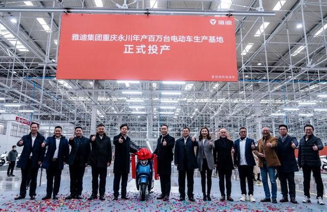 2021年12月31日,雅迪永川整车工厂投产,第一辆电动摩托车下线。该生产基地位于永川高新区凤凰湖产业园,总占地420亩,总投资13亿元,全部达产后可单班年产300万台电动车,双班年产600万台电动车,年产值达100亿至200亿元。