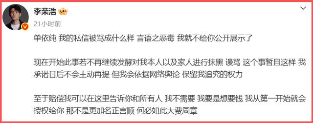 最让李荣浩上火的,是他提前预判了单依纯的回应套路。他在长文里就说过,希望她不要说 " 我不知道,都是公司干的 "。