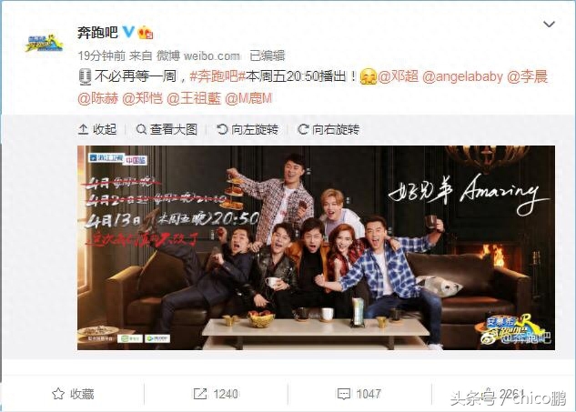 从这条微博可以看出跑男将会在本周五也就是4月13号播出!看到这消息网友纷纷表示:不解确定好的时间为何要修改?