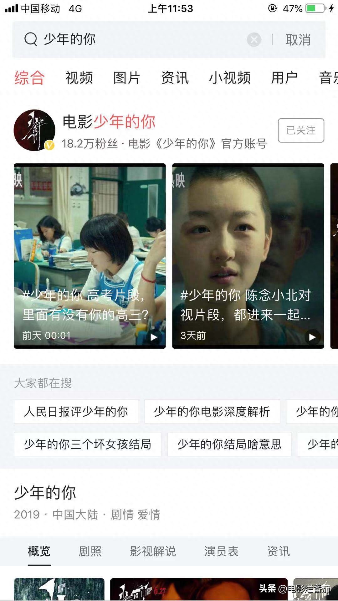 如果你想更多了解《少年的你》,那就打开今日头条app,用今日头条app上方的搜索框输入“少年的你”,然后就会看到有关于《少年的你》、周冬雨、易祥千玺等剧中人物更多的内容。