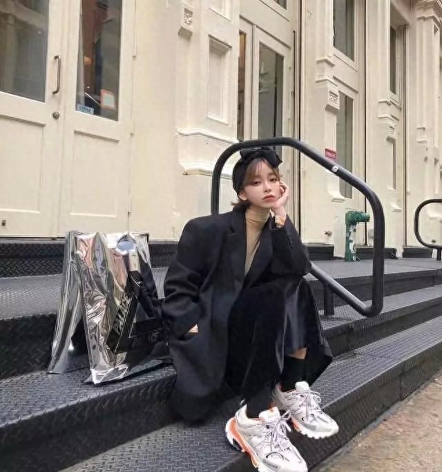 从巴黎世家“triples”开始,姜泰莉就钟情于复古老爹鞋穿搭。