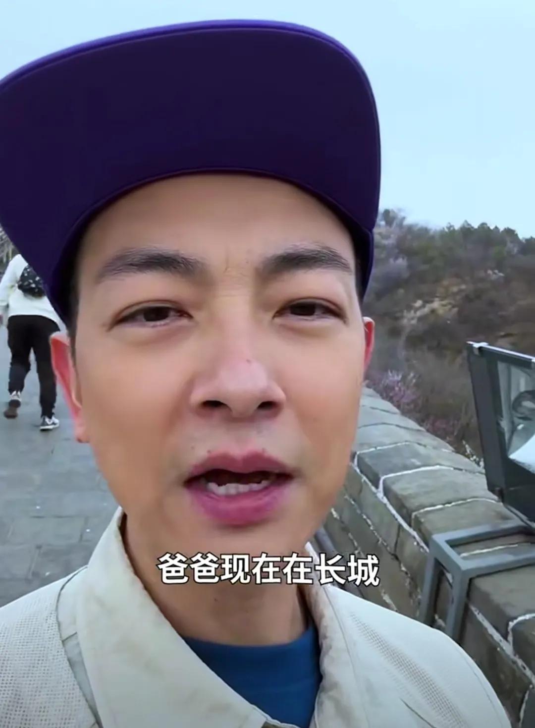 随后,他还爬了长城,并在长城上对着女儿喊话:“爸爸现在在长城,等你们长大一点,再带你们来这里看看。”