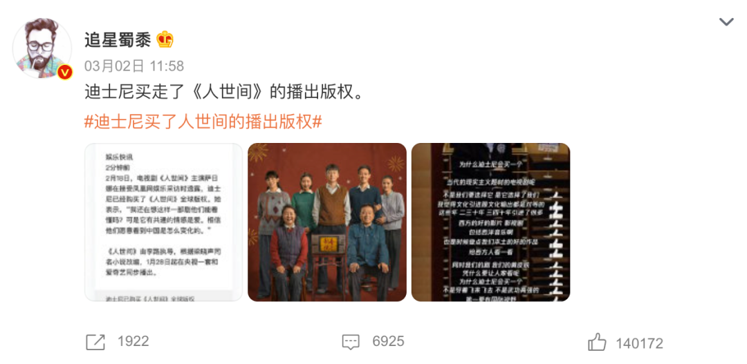 电视剧《人世间》刚播完,就被迪士尼买走了全球播出版权。