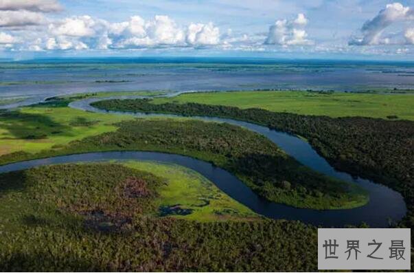 亚马逊河是一条全长6440公里的世界上流量、流域最大的河流,位于南美洲北部,拥有1.5万条支流的世界支流最多的河流,其中流域内的亚马逊热带雨林大部分位于巴西,是世界面积最大的热带雨林。
