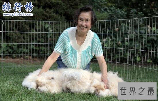 世界上毛最长的兔子:安哥拉兔,毛长达38厘米(仅露出嘴巴)