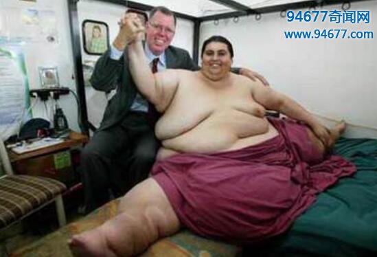 墨西哥人曼努埃尔·乌里韦是世界知名的旁人,2007年,他以597公斤的体重“荣获”吉尼斯记录,世界上最胖的人,但与今天的这位女主角比,还整整差了128公斤。