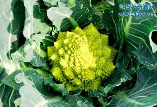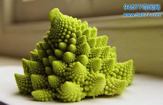 罗马花椰菜,是花椰菜的近亲,它可能是最规则最漂亮的蔬菜。罗马花椰菜是一种可食用的花椰菜,16世纪发现于意大利。这种花椰菜长相特别,花球表面由许多螺旋形的小花所组成,小花以花球中心为对称轴成对排列。