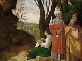 《三个哲学家》又称《三圣贤》,是文艺复兴时期的作品,直被认为是为乔尔乔纳所作。但经现代仪器检验后被否定了,因尚无归属,暂且仍归乔尔乔纳名下。三个哲学家,乔尔乔纳,1508年布面油画,123.5x144.5厘米,艺术史博物馆,维也纳与其他几乎所有乔尔乔内的作品一样,由塞巴斯提亚诺·德尔·皮奥博最后完成的这幅画,人们对它的意义也是争论不休。