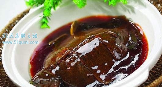 冰糖团鱼,宁波十学名菜之首,吃来软糯适中、甘甜润口,并且补虚益气。几百年前,有对于举人赶考道路宁波,在甬江一酒楼喝酒赏景,睹冰糖团鱼鳌头上翘,芳香扑鼻,一到嘴里,绵糯甘甜,便问掌柜:“此菜何名?”掌柜灵机一动,暗送彩头道:“独吞鳌头是也!”待到秋季,个中一位举人果真中了状元,他沉登小酒楼,并为之提名“状元楼”。此后,状元楼和冰糖团鱼所驰名噪浙东。