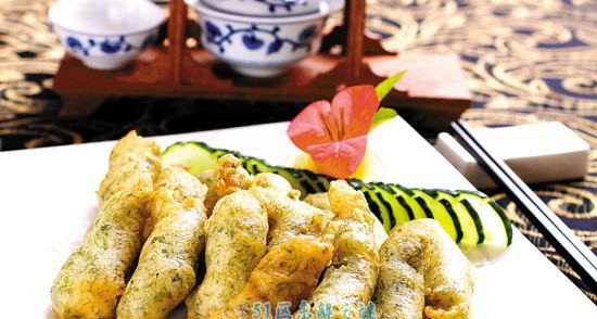 腐皮包黄鱼,是宁波十学名菜之一。是由黄鱼等为重要食材干成的一起菜品,是一起浙江的汉族名菜,系用优质完备的薄豆腐皮包上新奇生洁大黄鱼肉炸制而成,用醋与茄汁酱等佐食,其味更好。这是一起有百余年履历的宁波名菜。腐皮包黄鱼的创造央求很高。采用新奇的大黄鱼,大条的小黄鱼亦可,洗洁,剔洁鱼骨鱼刺,待用;采用优质豆。这菜,腐皮酥坚,鱼肉鲜嫩,外酥内嫩,养分丰厚,吃时用醋蘸之更妙。