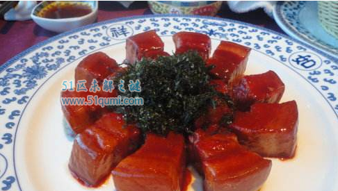 苔菜小方烤,是宁波十学名菜之一。选料和创造比拟简略,将薄皮五花肋条猪肉块切成小块搁入油锅,共时介入黄酒,酱油,红乳腐卤及白糖等佐料,先以小火煮短促,而后用旺火将卤汁浓缩,搁置盆内待用;采用本地产苔菜若搞,将苔菜扯松,剪成一寸多长,搁入油锅速炸至酥,立时捞起盖在肉上,再撒上少许白糖即可。此菜脸色红绿相间,酥糯相济、鲜香相配,咸甜相共,别具味道。
