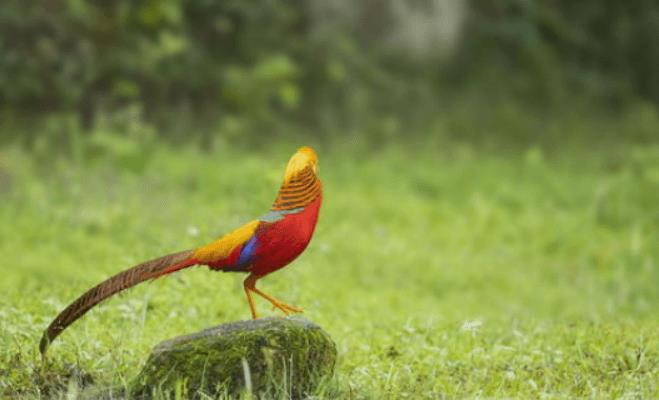 红腹锦鸡是中国特有的鸟类品种,体型中等,色彩鲜艳,光彩夺目是著名的观赏鸟类品种经常以各种谷物和昆虫为食。