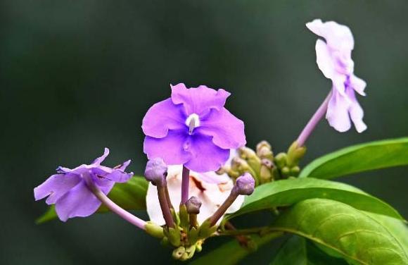 鸳鸯茉莉的花期比较长是属于长粒灌木植物,一年能开两次,花在早春时节开一次,然后在秋季10月份继续开花,刚开始开花的时候是淡紫色的,慢慢会变成白色。