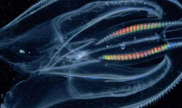 栉水母的身体是判透明状,不擅长游泳,基本是靠着水流的运动前进,由于身体特征的原因基本上是属于天然隐形的状态,到了晚上会散发出生物光。
