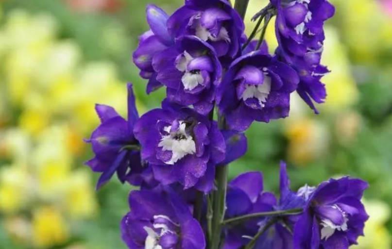 大花飞燕草的花期比较长,一般在每年的11月份到第二年的5月份开花,开花主要是蓝紫色为主,由于花瓣的形状有些像飞燕而得名,有很高的观赏价值。