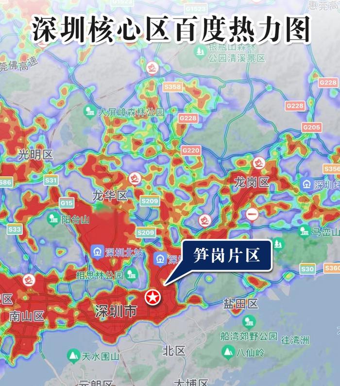 从百度热力图上,我们可以看到,笋岗人气爆棚,活力满满。未来,笋岗将以“新罗湖会客厅”的定位,走在罗湖城市更新的“风口浪尖”上,成为罗湖的全新形象门户。