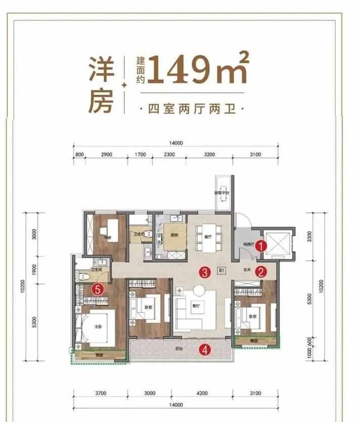 143㎡四室两厅两卫