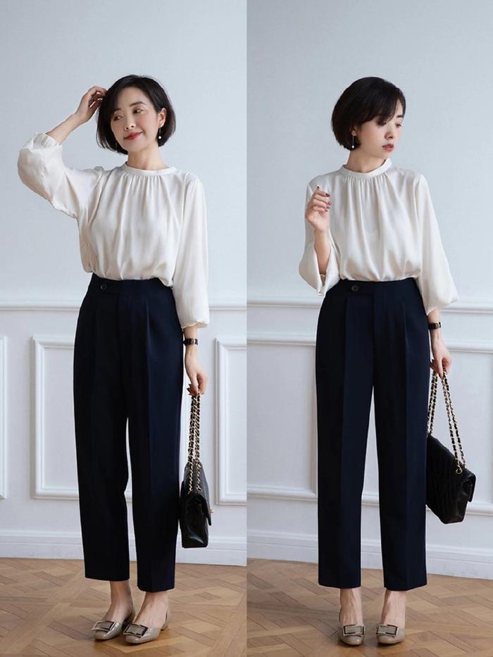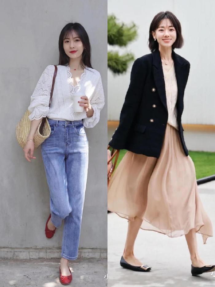 这种平底单鞋款式轻便,大家搭配的时候记得露脚踝,脚踝这个位置还是蛮重要的,属于我们下半身最瘦的地方,露出来有利于显瘦,遮住就容易显胖显矮,所以穿长裙,穿长裤也要记得最好避免覆盖住我们的脚背。