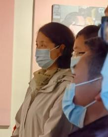 另一张照片中,李修平穿着白色冲锋衣搭配淡绿色丝巾,脚蹬一双样式简单的运动鞋,非常朴素。李修平笔直的站在那里,气质姣好,已经 58 岁的她丝毫不显老态。
