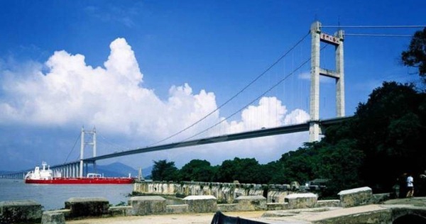 虎门大桥,日夜通车量为12万车次,桥下能风行10万吨级海轮