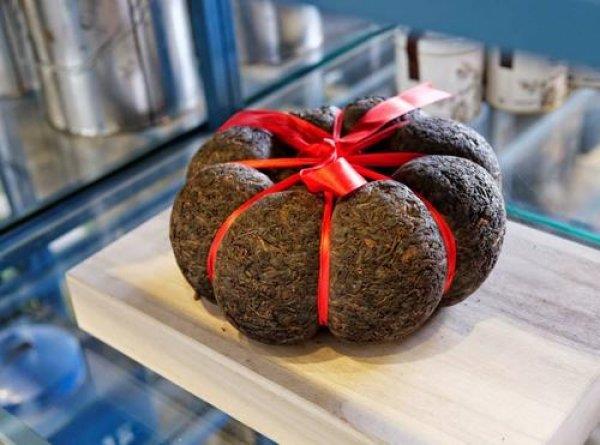 金瓜贡茶也称团茶,为紧压茶形式,因其形似南瓜,茶芽色泽金黄,得名金瓜,而该茶又是专为上贡朝廷而制,故名“金瓜贡茶”。金瓜贡茶原料精选无量山海拨2000米以上的云南大叶种春茶,再遵循古法工艺制作而成,现存真品仅有两沱,分别保存于杭州中国农业科学院茶叶研究所与北京故宫博物院,可见其价值连城。
