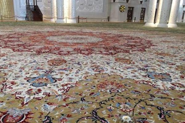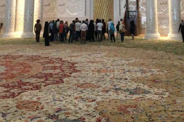 这块创下记录的波斯地毯由伊朗艺术家阿里·哈里奇(AliKhaliqi)设计,如今平铺在著名的谢赫扎伊德清真寺的主祈祷殿大厅内。这块世界上最大的波斯地毯在制作的时候耗费的人力物力也是非常庞大的,来自伊朗的1200名织工,使用38吨羊毛和棉花,历时18个月编织,总共打了2亿2千万个结。