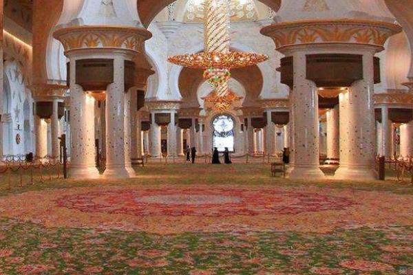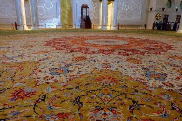 波斯地毯是伊朗著名的手工业之一,自古在国际上享有盛誉,以优良的质地、古朴雅致的图案和精美的工艺受到世人的喜爱。波斯地毯的一大特色是其染料从天然植物和矿石中提取,染色经久不褪不变,以抽象的植物、伊斯兰文字和几何图案进行构图。那你知道世界上最大的波斯地毯有多大吗?下面小编就带你们见识一下世界上最大的波斯地毯就诞生于伊朗艺术家阿里·哈里奇的手中,据说当时足足调用了两台运输飞机才顺利将其托运到阿布扎比的谢赫扎伊德清真寺中,而这张波斯地毯几乎将整个祈祷殿大厅全部铺满,总面积更是高达5627平方英尺。