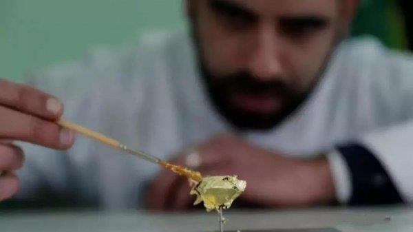 这款巧克力之所以这么的昂贵,主要是里面使用了非常多名贵的材料,里面有马达加斯加的名贵香草、法国的白松露、松露油还有番红花等等高级食材制作而成,并且这款巧克力还被设计成了被切割的钻石模样,外面也用纯金的金箔纸包裹着,这种金箔纸是可以食用的,现在国外的很多食物都有运用到。