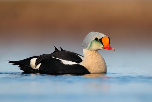 王绒鸭是最大的海鸭,生活在北半球,已经适应了寒冷的气候。王绒鸭头部形状颇为奇特,脖颈呈圆形。鸭子的名字来源于头上独特的黄色旋钮,因为旋钮几乎像皇冠。该鸭子种类主要分布在阿拉斯加、加拿大、格陵兰、斯瓦尔巴德和俄罗斯的北极海岸。雄性的繁殖羽比雌性的更加鲜艳。雄鸭拥有粉蓝色的项部、绿色的脸颊、红色的喙和淡黄色的额头;雌性总体上是温暖的棕色,黑色的喙使它们看起来像在微笑。