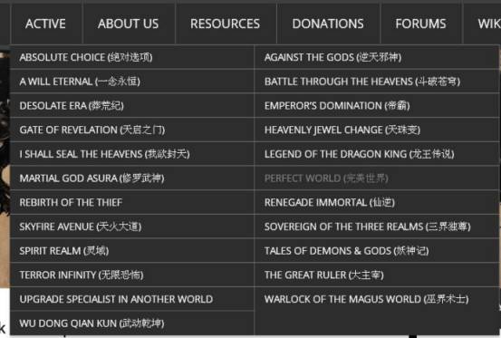 该网站所有登载了23部中国搜集演义(web novels),7部已翻译闭幕,包罗本文340万字的“我吃西红柿”(作家朱大志)的《盘龙》(Coiling Dragon)。